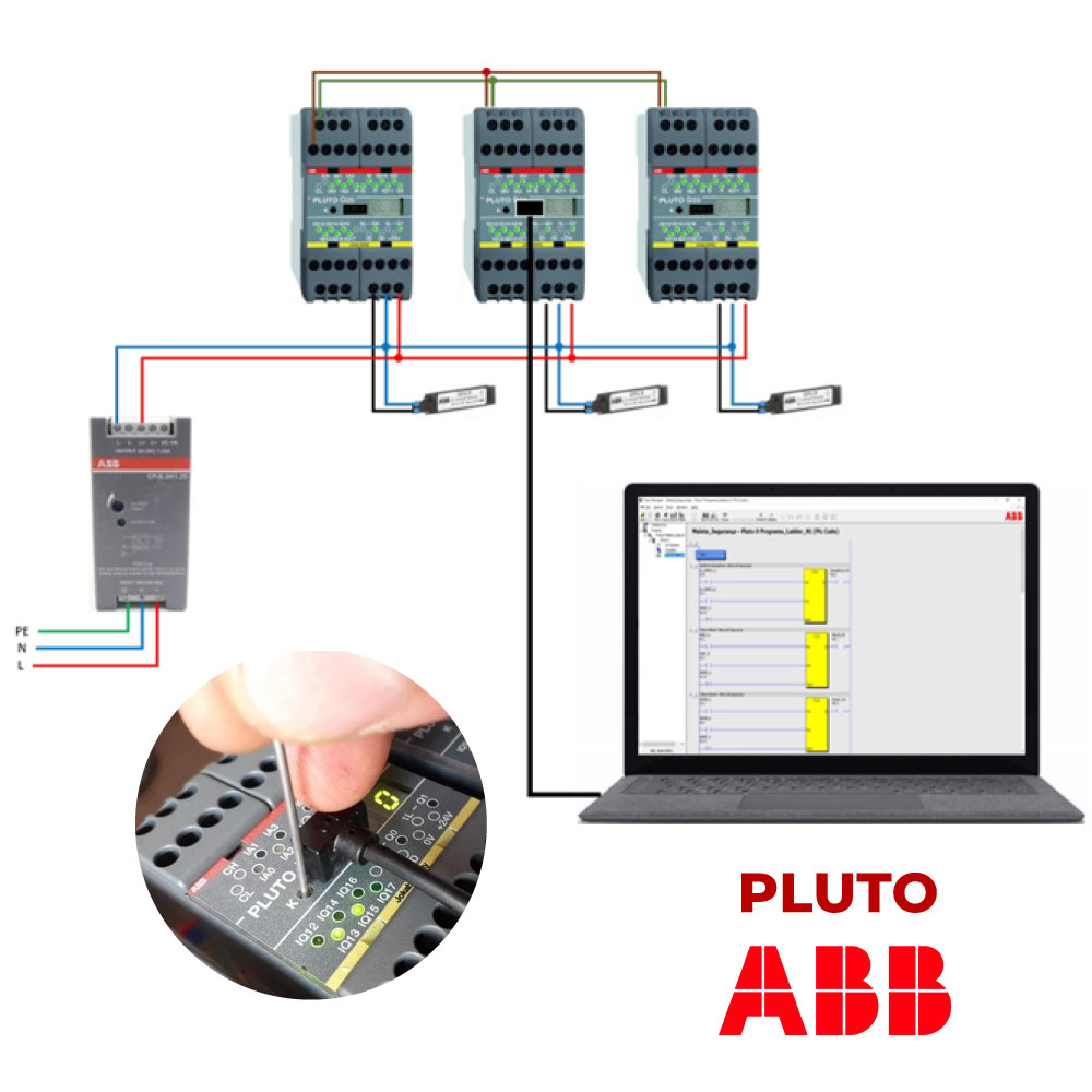 Passo a passo para configurar, programar e integrar controladores ABB Pluto em rede segura usando Pluto Manager, IDFIX e comunicação CAN.