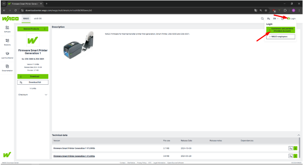 Com o link do firmware aberto, acesse a página de Login da Wago através do menu localizado no canto superior direita da tela.