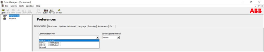 a) Na árvore lateral, duplo clique em “Preferences”, e selecionar a porta USB que contém o cabo de programação (VCP0):