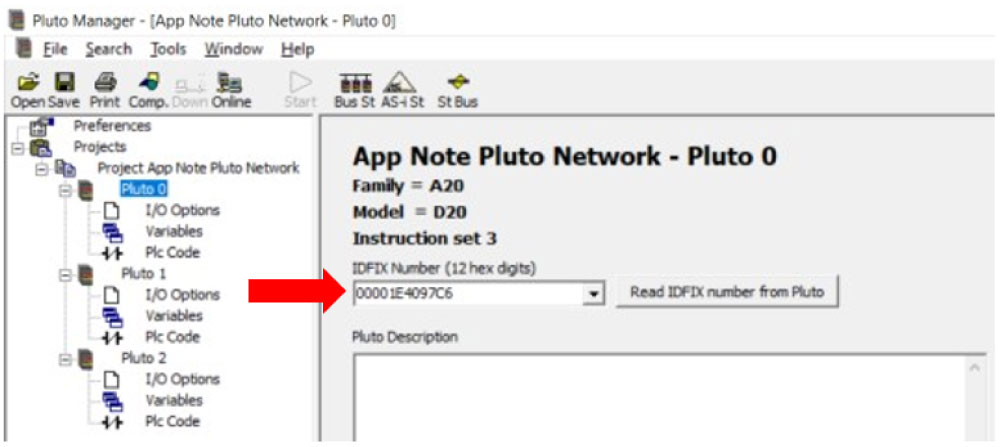 Repita este procedimento para cada um dos controladores da rede. O número do Pluto, que passa a ser indicado no display frontal do mesmo, representa a associação com o respectivo item na árvore lateral do programa.