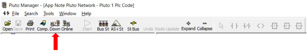 Uma vez que os critérios para a rede foram estabelecidos e não haja erros detectados pelo compilador, utilize o ícone da barra superior para descarregar o programa: