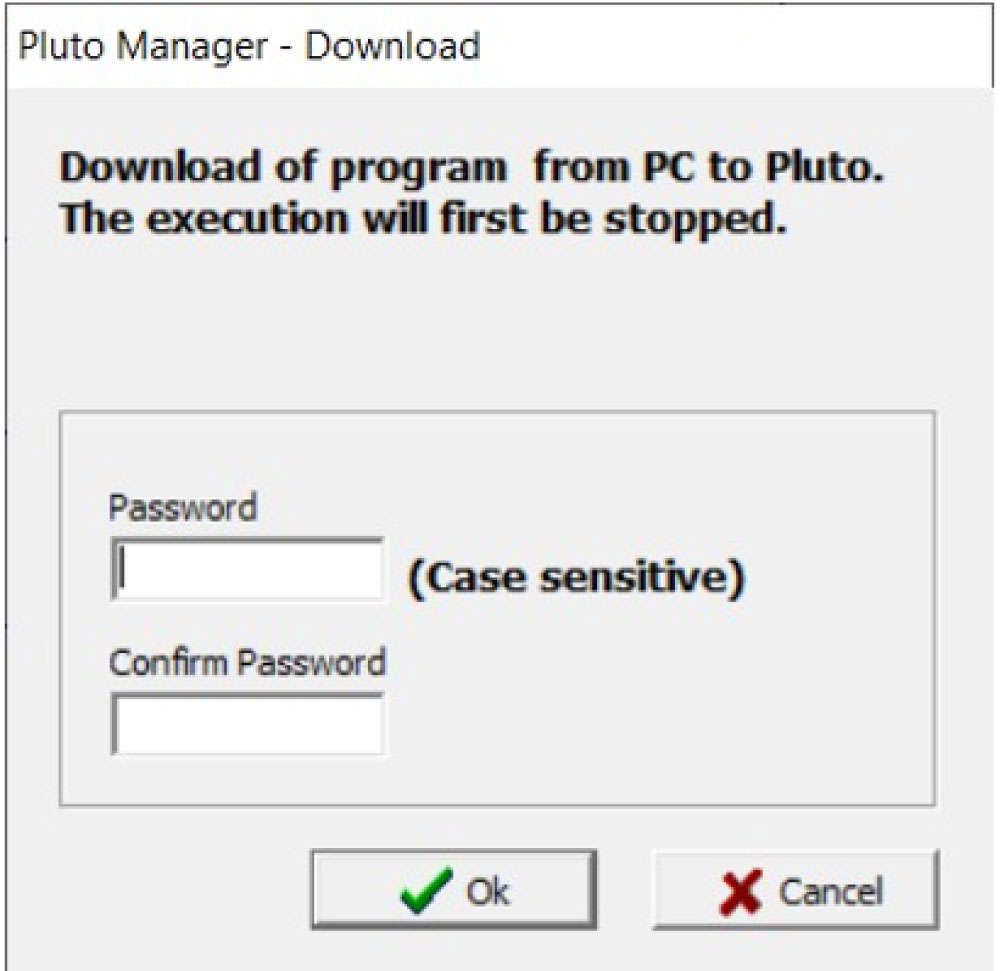 Se a memória dos controladores estiver vazia, será obrigatório criar uma senha para proteção do programa: