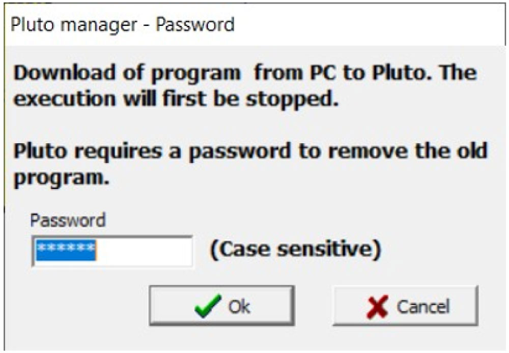 Se já houver um programa gravado, a senha cadastrada anteriormente será solicitada antes do download: