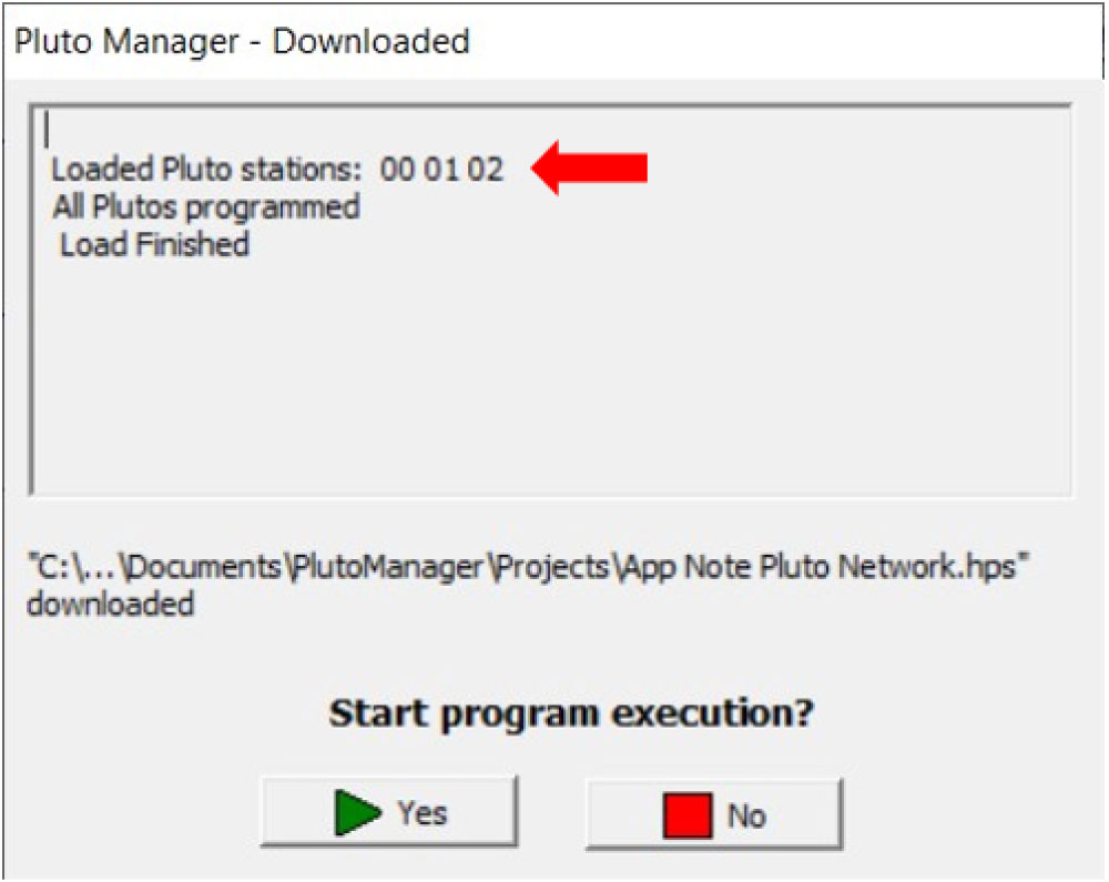 Após o download, confira se os números de todos os controladores do projeto estão presentes na mensagem que aparece, conforme abaixo, e inicie o programa: