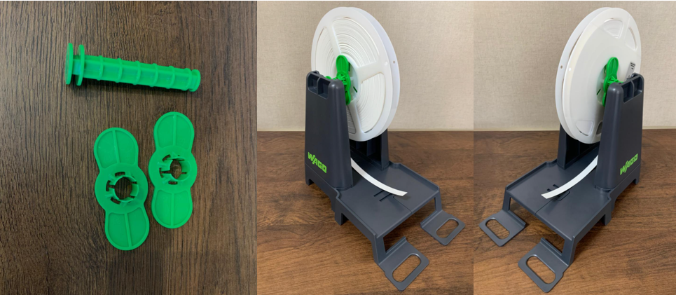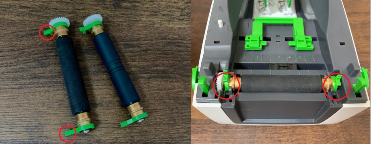 A impressora já acompanha 2 roletes, um rolete para identificações de Tags, que possui marcações de encaixe na parte central, e outro rolete para as demais identificações.