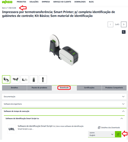 No site da WAGO é possível baixar gratuitamente o software SmartScript para seus projetos de identificação e também atualização da impressora.